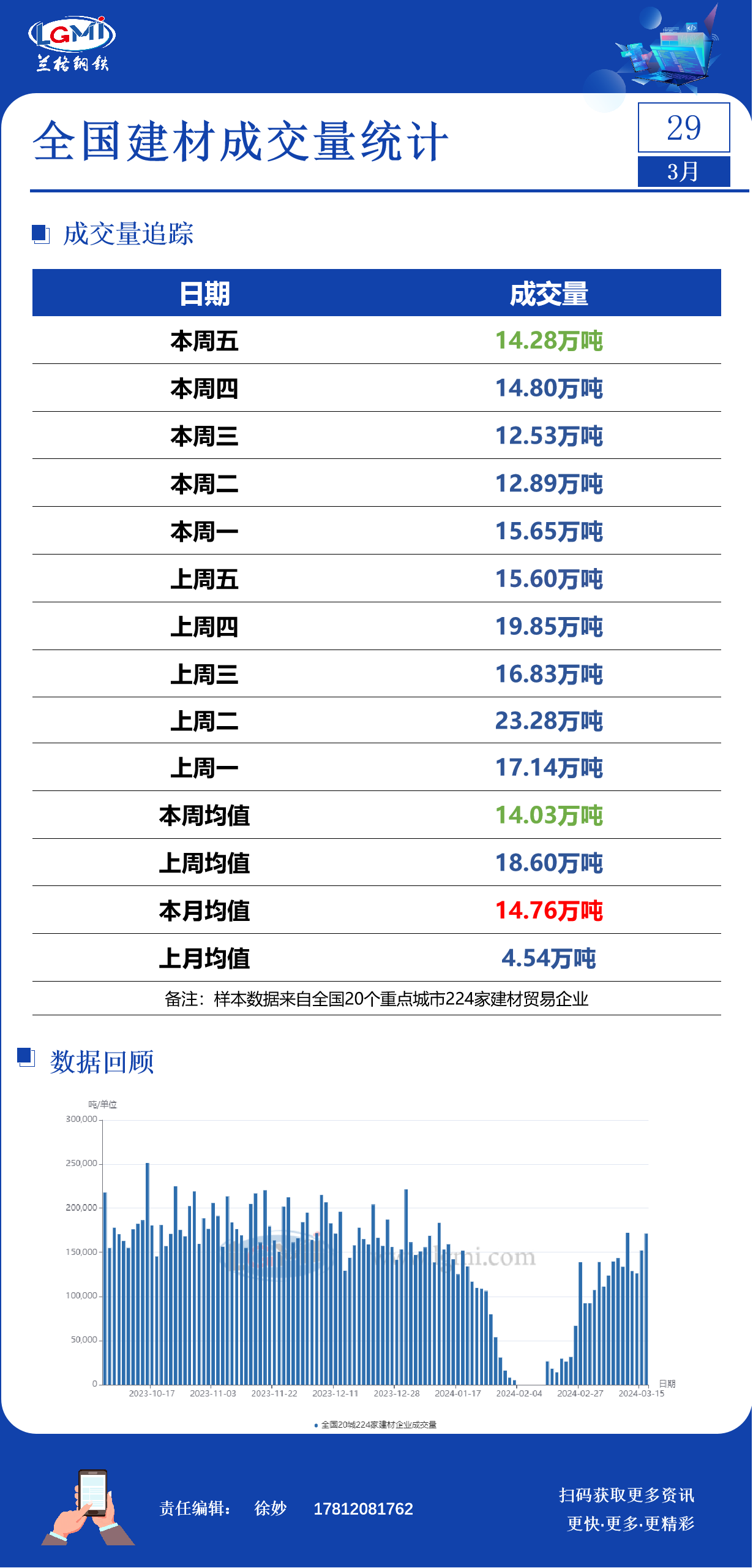 - 3月28日全国建材成交量小幅增加2024/3/28