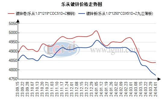 今日乐从地区镀锌板卷价格小幅下调。期货方面来看,早盘开市,黑色系期货走势震荡,观望情绪浓厚,多数下调10-30元出货,中下游延迟采购,涂镀板卷厂商开市交投清淡;午后热卷期货走红提振,现货市场有所询价补货,不过多是小批量为主。政策方面来看,《广东省2024年重点建设项目计划》业经省十四届人大二次会议审议通过。2024年我省共安排省重点项目1508个项目,总投资8.1万亿元,年度计划投资1万亿元;安排开展前期工作的省重点建设前期预备项目1240个,估算总投资4.5万亿元。宏观消息或对镀锌板卷市场迎来一波利好,对镀锌板卷价格形成有力支撑。
