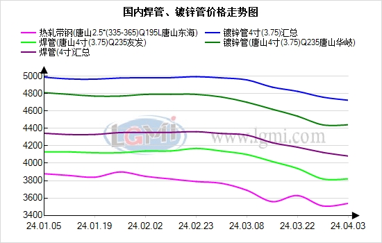 3日国内焊镀管市场价格稳中个调。据兰格钢铁云商平台监测数据显示,国内重点城市,4寸*3.5mm镀锌管平均报价4723元,焊管平均报价4083元,均较上一交易日涨5元。