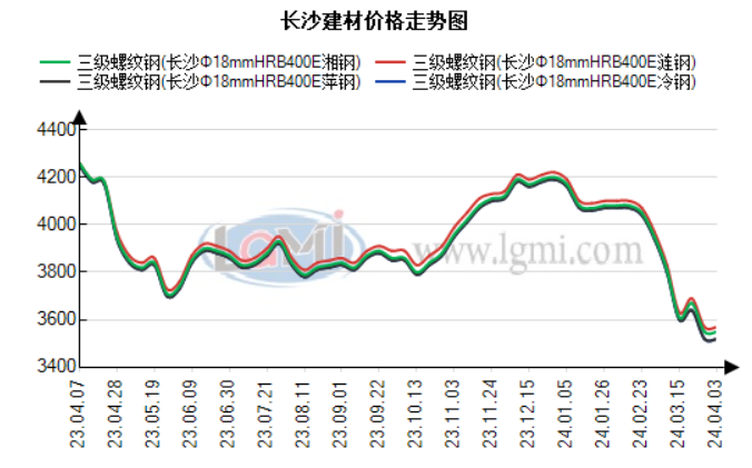 今日长沙建材价格持稳。据兰格钢铁研究中心监测显示:截至3日,长沙建材市场HRB400EΦ18mm螺纹钢萍钢3520元,冷钢3520元,湘钢3550元,涟钢3570元;