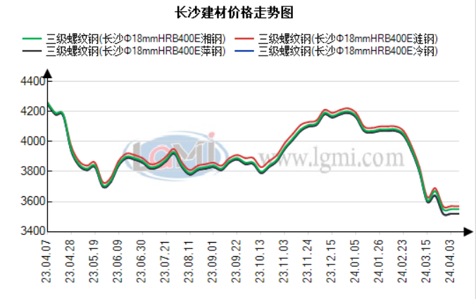 今日长沙建材价格持稳。据兰格钢铁研究中心监测显示:截至7日,长沙建材市场HRB400EΦ18mm螺纹钢萍钢3520元,冷钢3520元,湘钢3550元,涟钢3570元;