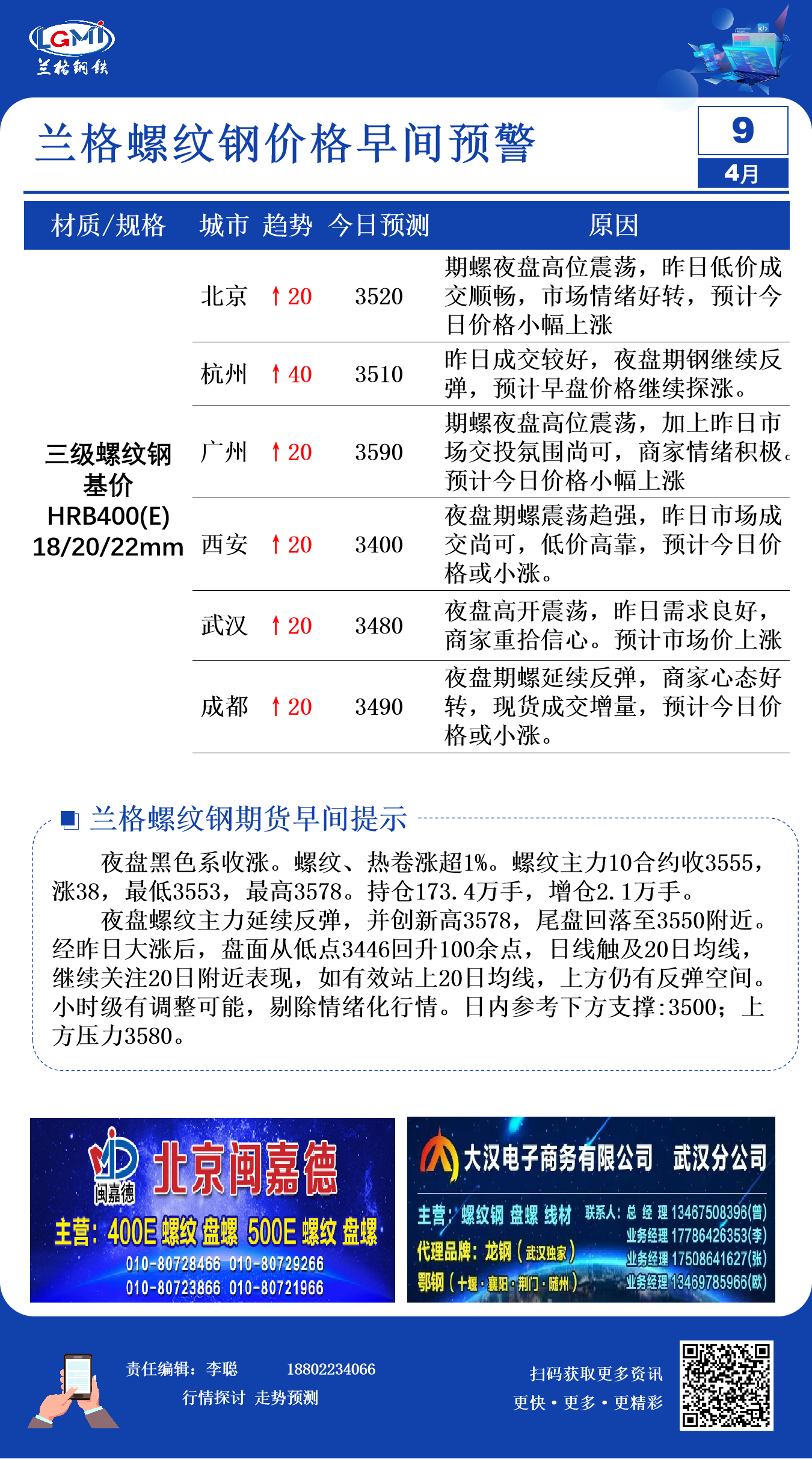 4月9日兰格螺纹钢价格早间预警