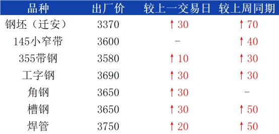 9日唐山型钢价格部分上调30-40元,期螺延续涨势,但下游市场恐高情绪有所凸显,成交氛围一般。工字钢主流报价3690元;槽钢主流报价3650元;角钢5#3650元。