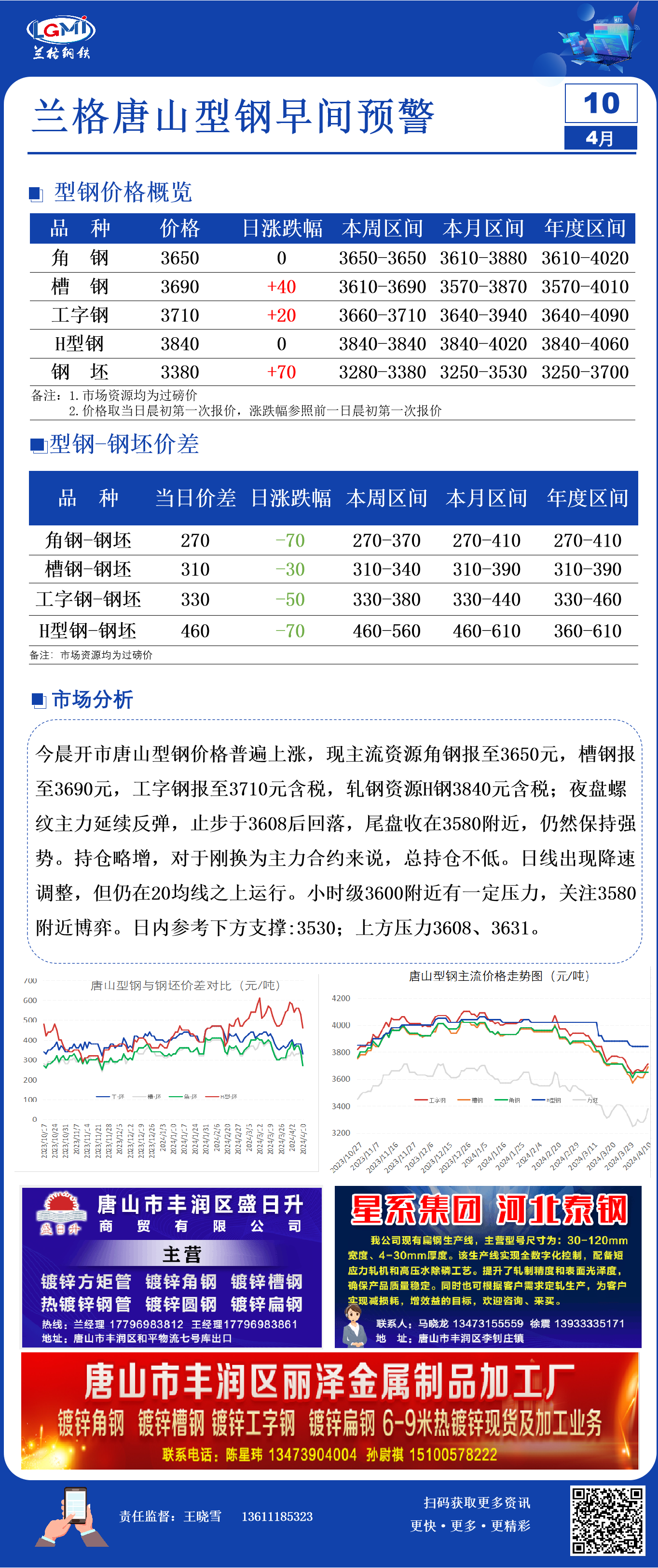 - 4月10日兰格唐山型钢早间预警2024/4/10