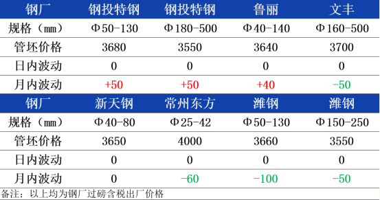 而期货盘面震荡上行后再度乏力,现在厂库以及社库库存压力依旧不小,管坯价格也开始持稳运行,预计今天无缝钢管价格偏稳运行。