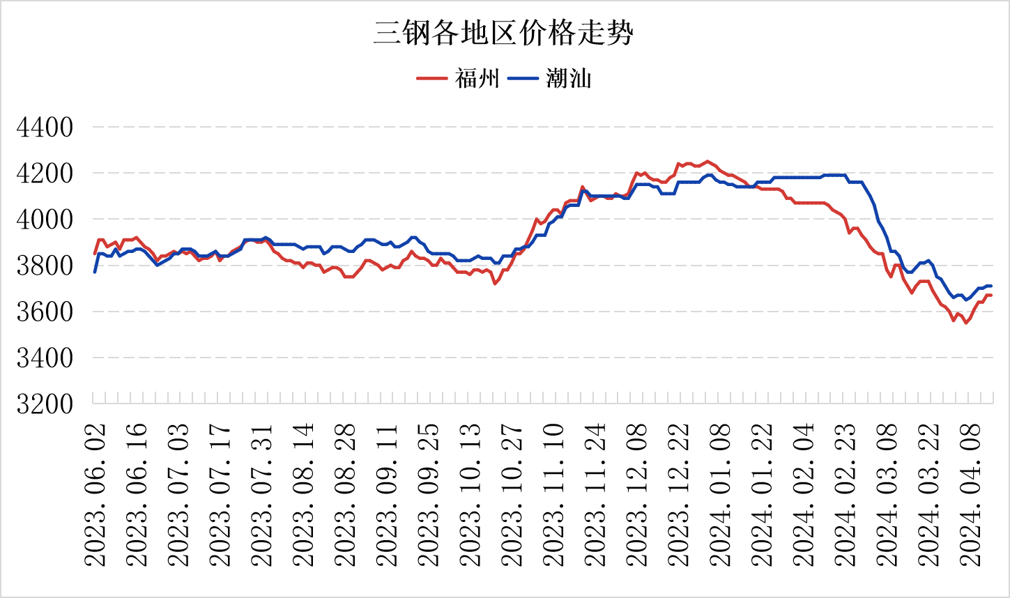 今日福州建材市场价格持稳。据兰格钢铁研究中心监测显示:截至15日福州建材市场HRB400EΦ18mm-Φ25mm螺纹钢三钢3670元,三宝3660元,大东海3660元,吴航3650元。HRB400EΦ8-Φ10盘螺三钢4070元,三宝4030元,大东海4030元,吴航4010元。HPB300Φ8-Φ10高线三钢4050元,三宝4020元,大东海4020元。潮汕价格持稳,三钢基价3710元。市场价格有小幅回调。