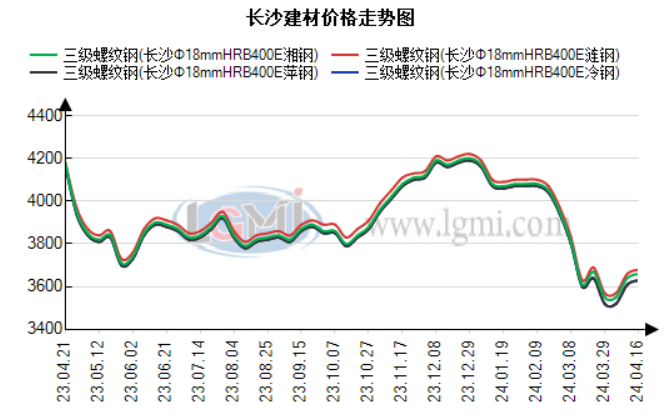 今日长沙建材价格小涨。据兰格钢铁研究中心监测显示:截至16日,长沙建材市场HRB400EΦ18mm螺纹钢萍钢3630元,冷钢3630元,湘钢3660元,涟钢3680元;