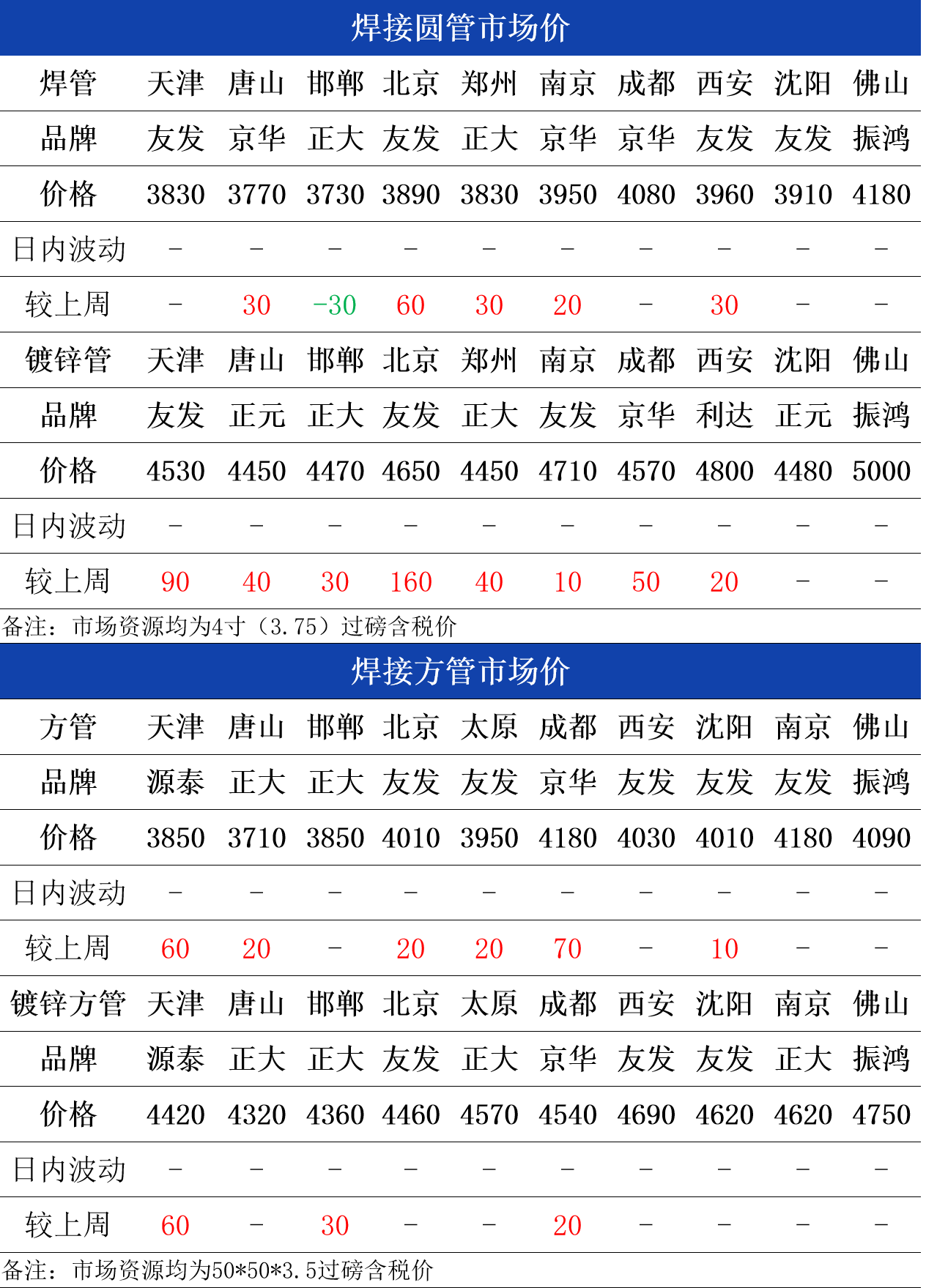 昨日焊镀管厂价格政策即跟随上调,但落地涨幅偏窄,唐山主流管厂4寸3.75mm出厂价焊管3770元,镀锌管4470元,生产焊管利润亏损态势有所加剧。