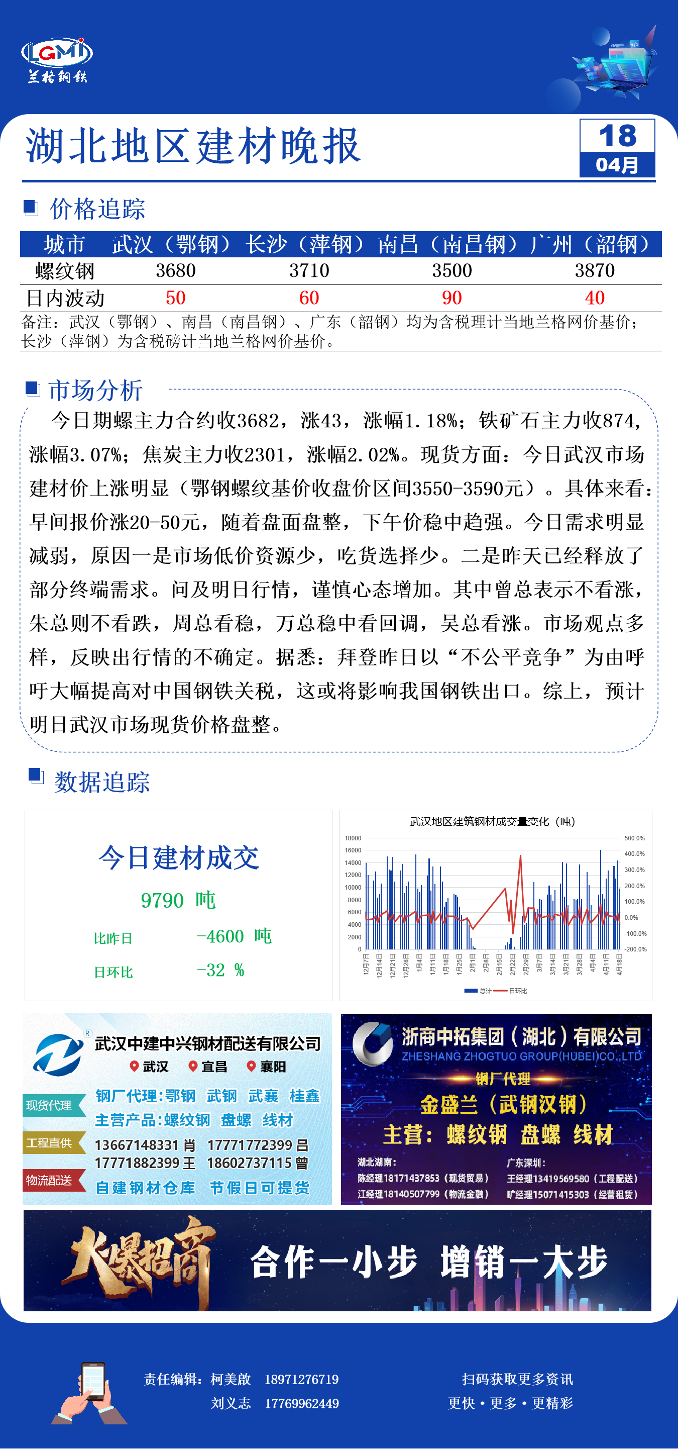 - 兰格钢铁:4月18日全国重点城市钢材成交量29.34万吨,较上周上升1.09%2024/4/18
