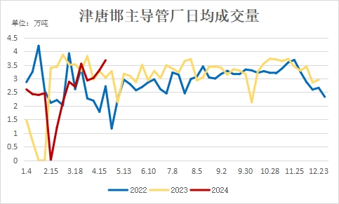 4月第3周,在统计津冀区域11家管厂日均出货量3.67万吨,较上周增0.36万吨。根据日出货量监测数据显示,周初管厂销量一般,周中随行情带动,在涨价落实前刺激一定中下游采购,管厂日订单量再现增超20%的情况。