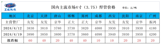 - 兰格钢铁焊管周报(四月第三周)2024/4/19