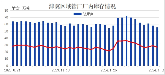 4月第3周,在统计津冀区域10家管厂库存55.7万吨,较上周减少2.4万吨,月内已连降3周。据了解,上游持续高位,管厂额外的原料锁货批量较小,而行情变化销量突增,在统计管厂厂内库存继续下降,目前厂内原料库存26.9万吨,较上周减2.1万吨;成管库存28.8万吨,较上周减0.3万吨。
