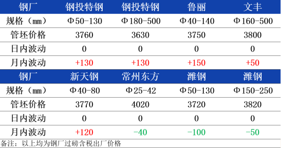 昨天管坯出厂报价持稳,主流市场报价主稳个别资源涨10-20元,现20#热轧管坯出厂报价3760-4130元,市场直发报价3780-3940元。周末期间管坯市场出货并不理想,儿昨天期货盘面开盘先涨后跌整体呈现区间震荡走势,夜盘盘面走势也偏弱,商家情绪逐渐回归现实,管坯价格涨势受阻。而焦炭二轮提涨快速落地后,管坯生产成本进一步上移,恰逢钢厂新一期的合同陆续开始接单,市场贸易商以及管厂目前利润欠佳,对于管坯的补库多按需采购,因此钢厂整体接单压力不小。不过从目前管厂开工情况来看,对于管坯的消耗具有持久性。总的来看,目前管坯强成本与弱需求双重博弈下,预计今天管坯价格偏弱运行为主。
