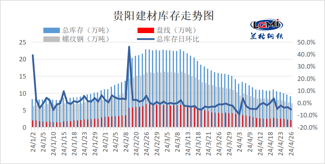 - 贵阳钢材库存盘点(四月第四周)2024/4/27