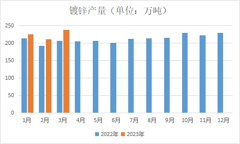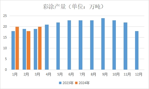 据中钢协统计,3月份镀锌板产量238万吨,同比增加32万吨,上升15.3%,累计产量675万吨,同比增加62万吨,上升10.2%;4月份彩涂板产量20万吨,同比增加1万吨,上升5%,累计产量59万吨,同比增加3万吨,上升4.2%。(注:以上为36家样本企业数据)