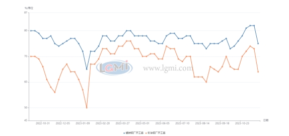 兰格调研:截至4月25日,我网对全国53家钢厂样本进行统计。其中镀锌板生产线共155条,开工率为85%,较上月末上升4%;彩涂板生产线共104条,停产或检修28条,开工率为73%,较上月末持平。样本数据日均总产量镀锌板9.435万吨,彩涂板3.11万吨。