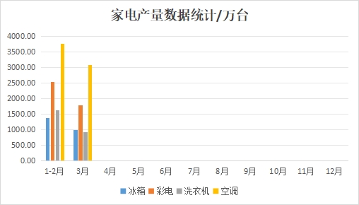 3月全国冰箱产量993.4万台,同比增长13.2%;1-3月累计产量2362.1万台,同比增长12.8%。3月全国洗衣机产量932.4万台,同比增长5.9%;1-3月累计产量2559.9万台,同比增长13.8%。
