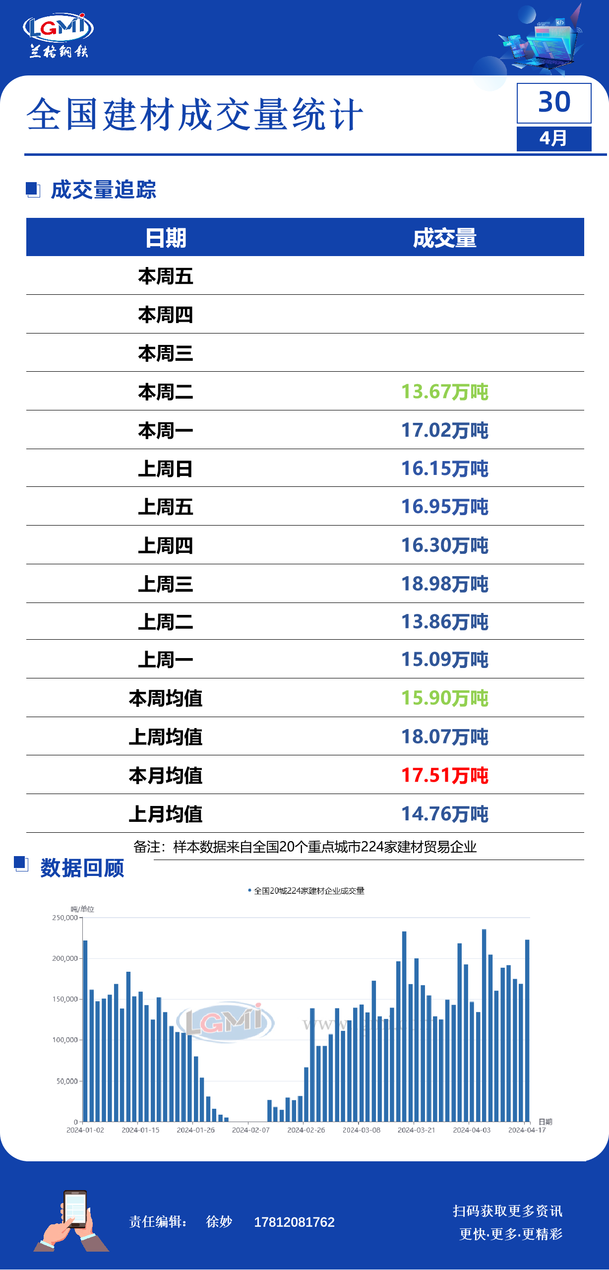 - 4月30日全国建材成交量大幅减少2024/4/30