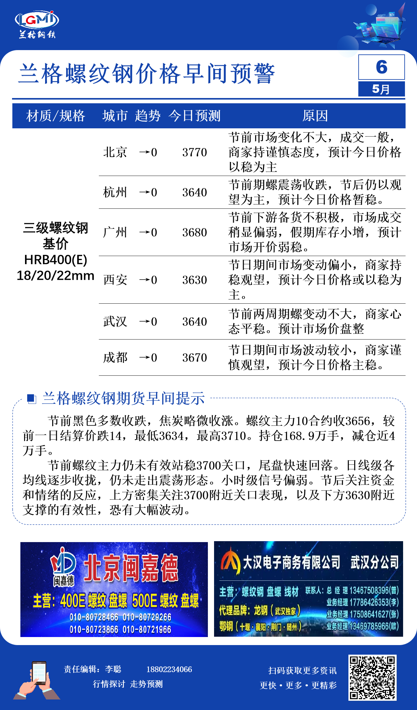 5月6日兰格螺纹钢价格早间预警