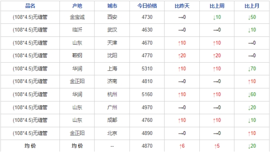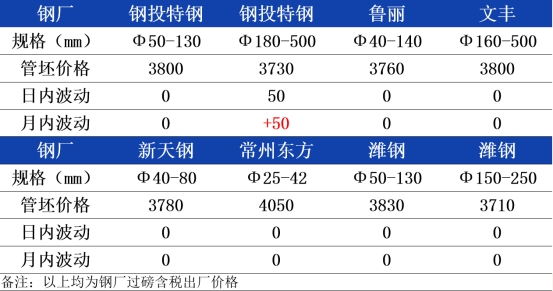 今日期钢市场高开低走,无缝管市场价格大幅上涨,议价空间收窄。受行情带动,中下游接受度尚可,成交好转,市场情绪较好。同时今日多家主流管厂报价上涨,山东金宝诚今日无缝管率先上调50元,预计其他管厂也将陆续上调,成本端持续支撑,市场价格后续还有继续上涨空间,综合来看预计今天无缝管价格稳中偏强运行。