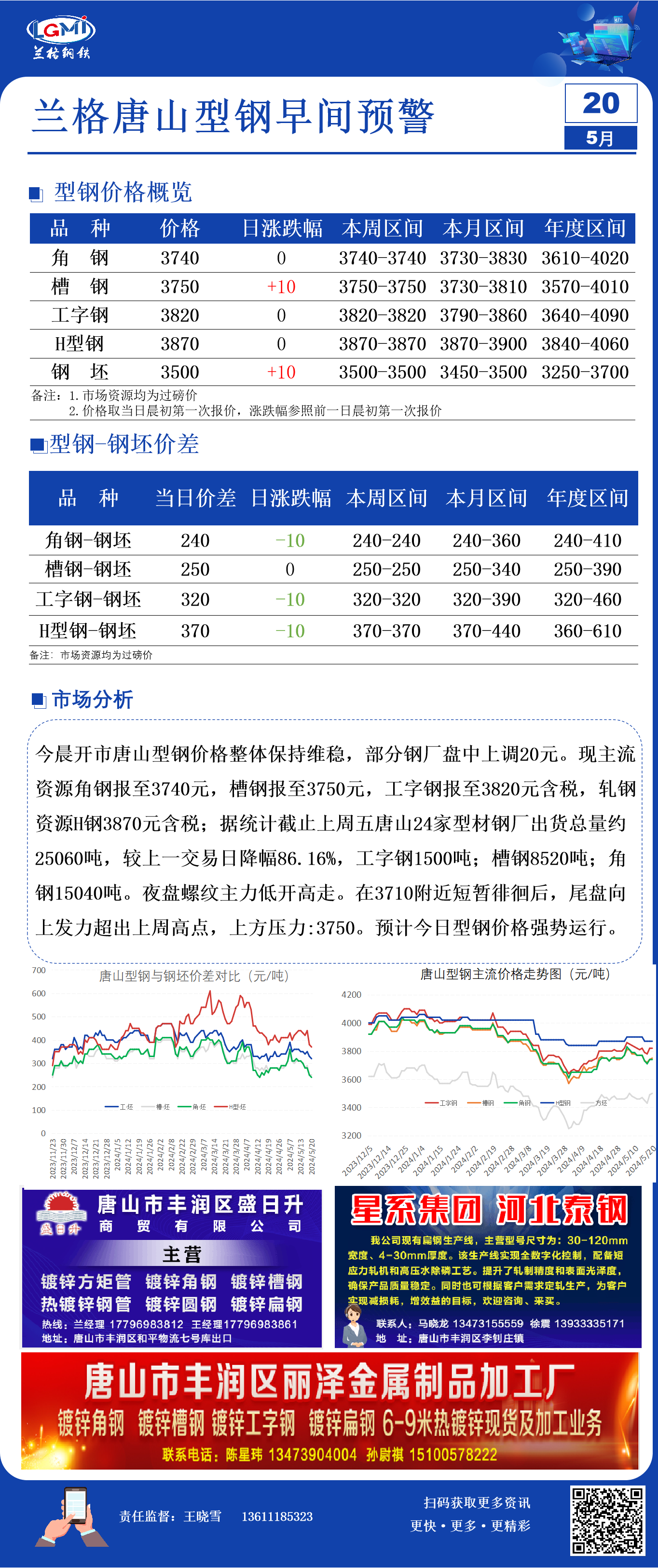 - 快讯:20日唐山镀锌型材价格维持不变2024/5/20