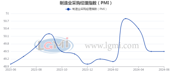 中国物流与采购联合会、国家统计局服务业调查中心发布的2024年6月份中国制造业采购经理指数(PMI)为49.5%,与上月持平。从13个分项指数来看,同上月相比,产成品库存指数、进口指数和生产经营活动预期指数上升,指数升幅在0.1至1.8个百分点之间;新出口订单指数和从业人员指数持平;生产指数、新订单指数、积压订单指数、采购量指数、购进价格指数、出厂价格指数、原材料库存指数和供应商配送时间指数下降,指数降幅在0.1至5.2个百分点之间。