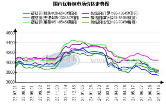 市场方面:今日国内优特钢市场价格整体处于小幅下跌态势,目前南方区域受到雨季影响,主要以刚需为主。市场现货低价资源偏多,主要低价出货,目前行情小幅波动,商家依旧操作谨慎。综合来看,预计明日国内优特钢市场价格或企稳运行。