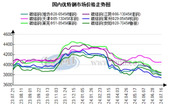 今日优特钢市场价格主稳运行,据兰格钢铁云商平台监测数据显示,国内重点城市45#碳结钢85mm平均报价3976元,较上一交易日持平;40Cr合结钢85mm平均报价4141元,较上一交易日持平。