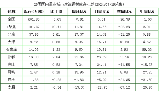 - 国内重点城市螺纹钢库存汇总(07.19)2024/7/19