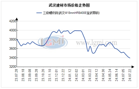 现货市场:本网调研武汉13家建材贸易商合计出货7520吨,较上个交易日减少2140吨。今日整体需求一般,主要采购方在工地,投机需求很低迷。问及明日行情,大家看弱为主。市场人士表示:目前终端需求太差,加上预期又不强,导致大家信心普遍受挫。按照目前的需求情况,对于后市已不看好。据了解:本省主流钢厂关于新旧国标钢筋切换的工作将于7月底至8月初执行。目前,宝武鄂钢和宝武武钢均计划于8月1日按新国家标准组织生产。并提醒各位客户在过渡期内及时优先消化旧标产品,确保在新标准实施后所销售的产品符合新国标。据悉:一年期、五年期LPR均下调10个基点至3.35%和3.85%。不过,期货盘面受其刺激有限。另外,全国政协于今日在京召开2024年上半年宏观经济形势分析座谈会。其中提到:要围绕深化经济体制改革重要部署和高质量发展首要任务持续深化研究,多提精准、务实、管用的对策建议,助力改革举措落到实处,更好塑造发展新动能新优势。综上,预计明日武汉市场现货价格偏弱。