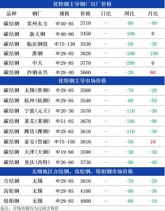 市场方面:近期大宗商品走势均偏弱,期货震荡下行,昨日交投氛围略显冷清。下游企业需求不温不火,刚需采购,市场心态有走弱迹象。商家为降低市场降低风险,以消耗前期库存,缺失规格拿货为主。昨日华东地区成交低迷,低价资源少量成交,华中地区成交同样偏弱,据当地贸易商反馈,当地钢厂协议任务基本完成,协议压力不大,随行就市为主。综合来看,预计今日国内优特钢市场价格继续主稳运行。