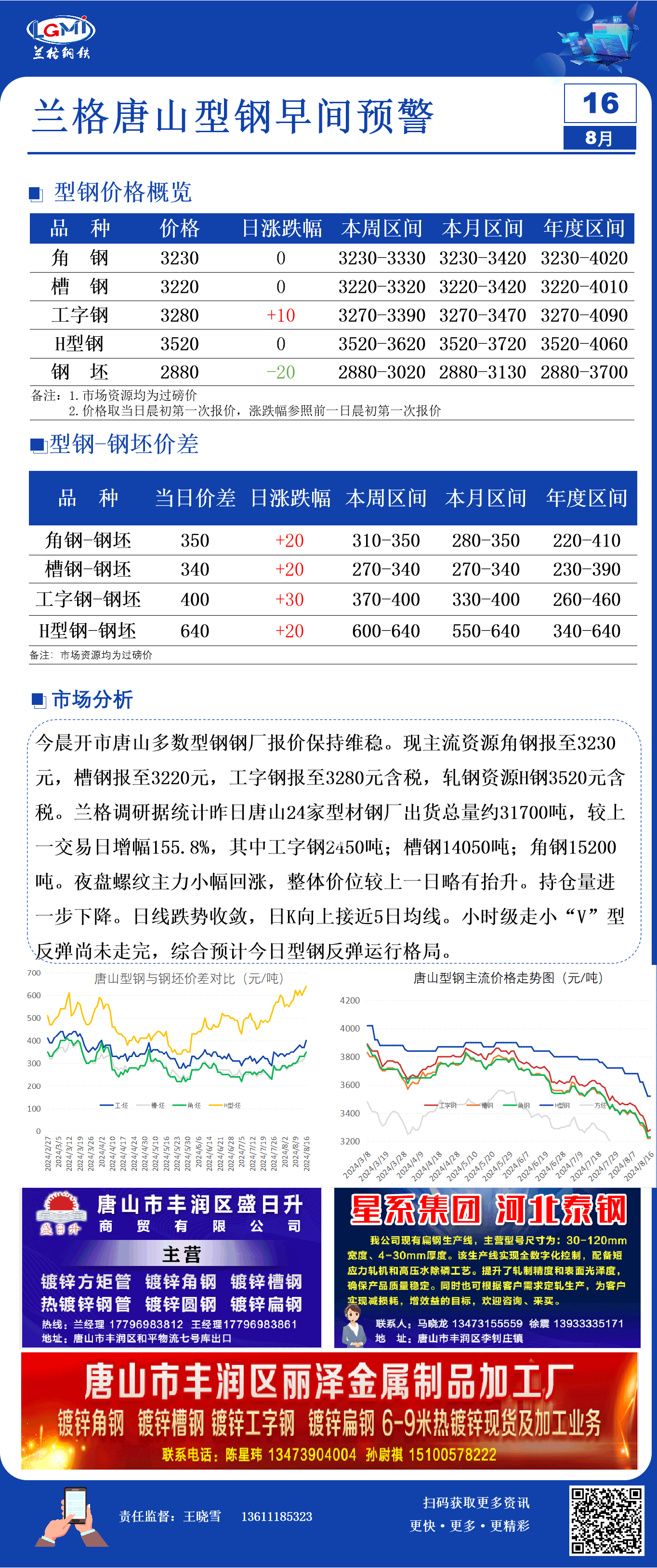 8月16日兰格唐山型钢早间预警
