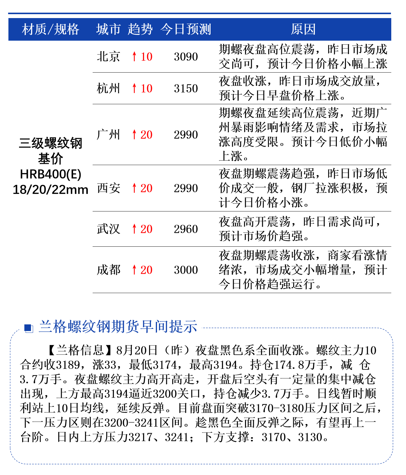 - 8月21日兰格螺纹钢价格早间预警2024/8/21