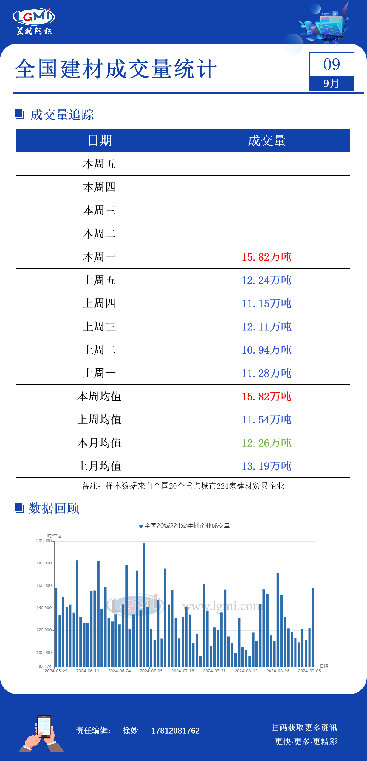 - 9月9日全国建材成交量大幅增加2024/9/9