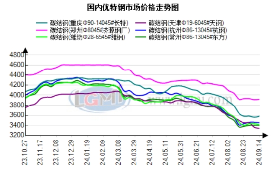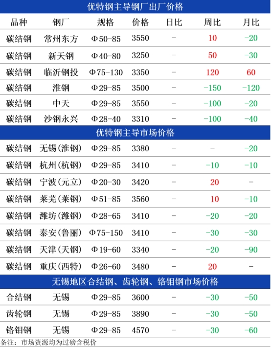 市场方面:当前市场交易逻辑经历了从现实到预期的切换,步入优特钢金九银十的传统旺季,当前基本面有转好的迹象。分地区来看,近日江浙一带成交转好,商家报价上探,供需矛盾缓解。华北、华中地区成交尚可,库存延续去库。综合来看,近期黑色系期螺走强,现货市场跟随期货价格有涨价迹象,预计今日国内优特钢价格小幅趋强运行。