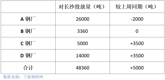 供应方面,本周湖南区域四家建材主流供应钢厂建材产量约18.57万吨,较上周增加,对长沙的投放共计4.83万吨,较上周增加0.5万吨。