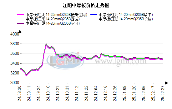 - 江阴中厚板价格小幅下调 主流需求有所转弱2025/2/27