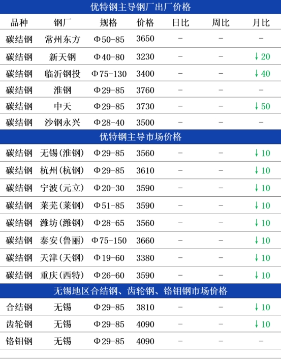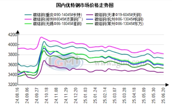 市场方面:上周优特钢久弱了整一周,各方本还有收红的期待,还是如此落空,叠加钢厂及代理的无领涨的动作,现有优特钢量价步入低价,后市伴随天气更加炎热,价格预期上涨更为困难。分地区来看,华东地区从锡杭两地了解,优特钢资源主流报价继续保持坚挺,吆喝多求购少,当地市场待跌观望多,交投依旧是平淡,目前优特钢市场虽有坚守,但短时压力山大,部分商家索性等着来单砍价;华北、华中地区优特钢主流资源为促成交小幅下跌10-20元,华南市场部分规格更有拼低去至20-30元左右下方,尽管如此,买单依旧萎靡。综上,如今场内优特钢量价有继续下移示弱趋势,各方信心难以提振,库存高需求低,优特钢商家们使劲浑身解数换量效果也难有起色,短时优特钢市场行情保持弱向运行为主。