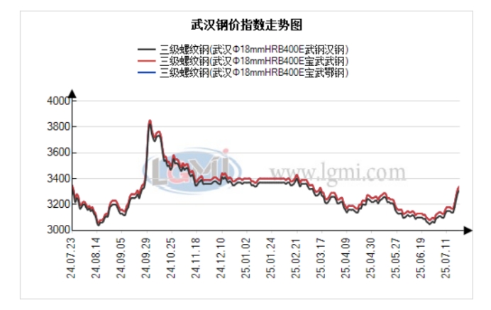 今日武汉建材现货价格持续上涨20元/吨。据兰格钢铁研究中心监测显示:截至7月23日,武汉建材市场HRB400EΦ18mm螺纹钢宝武鄂钢3340元,宝武武钢3340元,武钢汉钢3310元。