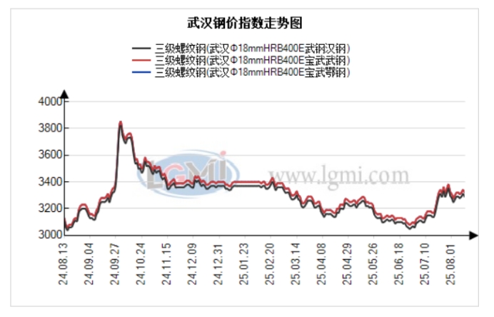 今日武汉建材现货价格小幅下跌20元/吨。据兰格钢铁研究中心监测显示:截至8月13日,武汉建材市场HRB400EΦ18mm螺纹钢宝武鄂钢3320元,宝武武钢3320元,武钢汉钢3290元。