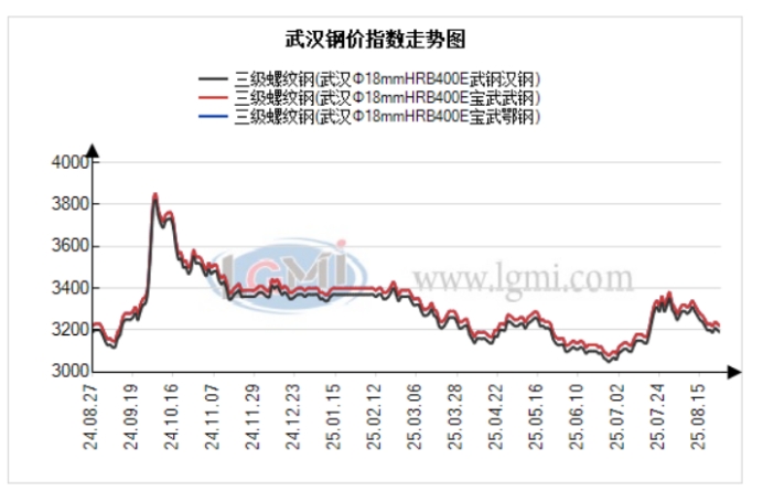 今日武汉建材现货价格主稳。据兰格钢铁研究中心监测显示:截至8月28日,武汉建材市场HRB400EΦ18mm螺纹钢宝武鄂钢3220元,宝武武钢3220元,武钢汉钢3190元。