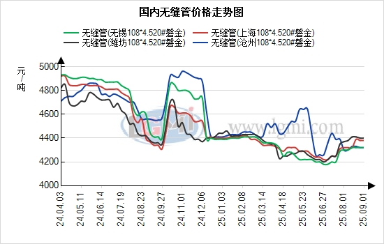 无缝管:昨日期货弱势震荡运行,无缝管现货价格弱稳运行,市场成交情况欠佳,低价成交小幅放量,目前原料端价格开始走弱,对于成材的支撑有所减弱,夜盘期螺价格震荡偏弱运行为主,在需求情况未见明显好转情况下,价格支撑偏弱,临近淡旺季切换之际,传统旺季需求仍有待验证,供需双弱格局下,预计今日无缝管价格稳中偏弱运行。