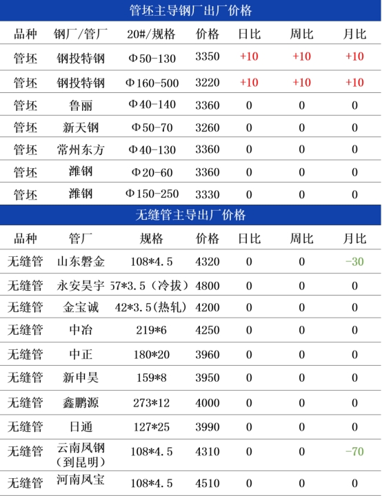 管坯:昨日管坯价格小幅上行,江苏地区管坯价格持稳,山东地区管坯价格上调10元,节假日期间,多数市场处于休市状态,终端用户仅维持按需采购策略,导致钢厂库存累积现象显著加剧,市场成交量大幅缩减。国庆节后归来,节后终端出现一波采购需求,整体成交量比节前增加显著,但交易主要集中在低价资源。综合来看,预计今日管坯市场价格持稳运行。
