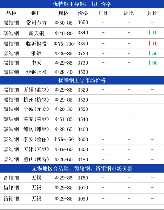 市场方面:昨正处周日时段,暂无黑色系期货盘面指引,除部分优特钢商家努力吆喝让利促销外,亦有部分弱稳后僵持观望,静待今日开市再另行应对。现货方面,分地区来看,华东地区从锡杭等地了解,碳合结钢资源主流报价窄幅调整,轴承钢、铬钼钢资源主流维持平稳,整体较上周报价相当,各方报价价差缩小,实单买卖难理想,后市预期恐转向谨慎及担忧。华北、华中地区优特钢市场持稳观望,暂无激进调整,其中碳合结钢资源主流报价企稳,轴承钢、齿轮钢资源场内多见10元左右窄幅波动,若买卖上仍无有效改善,不排除借势重回拼低抢单的节奏。综上,目前优特钢市场暂无利好方面消息刺激,市场缺乏信心,短时优特钢市场行情恐进一步有灵活的空间释放。