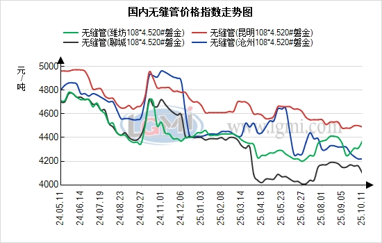无缝管:节后归来无缝管市场成交一直表现不温不火,整体需求释放力度有限,上周全国地区多雨,下游终端和资源外发都较差,商户出货乏力,再加上国庆节期间累积库存压力较大,基本面矛盾仍显突出,受制于现实压力,无缝管拉涨吃力。宏观方面受到海外关税政策扰动,市场整体观望情绪浓厚,商家避险情绪升温,操作上多以快进快出,积极降库操作为主,综合来看预计今日无缝管价格继续持稳运行。