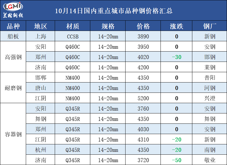 - 10月14日国内重点城市品种钢价格汇总2025/10/14