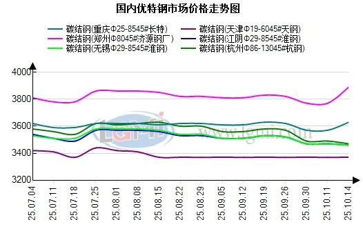 钢厂方面:今日常州东方优特钢出厂价格持稳运行,现45#碳结钢出厂3650元;杭钢优特钢日定价圆钢价格下调30元,现45#碳结钢出厂3530元,以上均为含税价格;临沂钢投优特钢出厂格持稳运行,现45#碳结钢出厂3380元;天钢优特钢出厂价格下调10元,现45#碳结钢出厂3310元。今日黑色系期螺弱势运行,打击市场信心,多数日定价优特钢厂选择下调出厂价格。