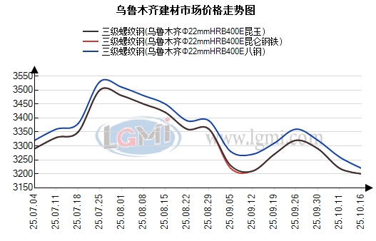 根据兰格钢铁云商平台监测数据显示,以乌鲁木齐为例,截至2025年10月16日,乌鲁木齐建材市场HRB400EΦ22mm螺纹钢八钢3220元较上一交易日持稳,昆仑钢铁3200元,昆玉3200元,闽新3200元,大安3150元,新安特3190元,和钢3160元,较上个交易日持稳;HPB300Φ8-10mm高线八钢3370元,较上个交易日持稳;HRB400EΦ8-10mm三级盘螺八钢3420元,较上个交易日持稳。
