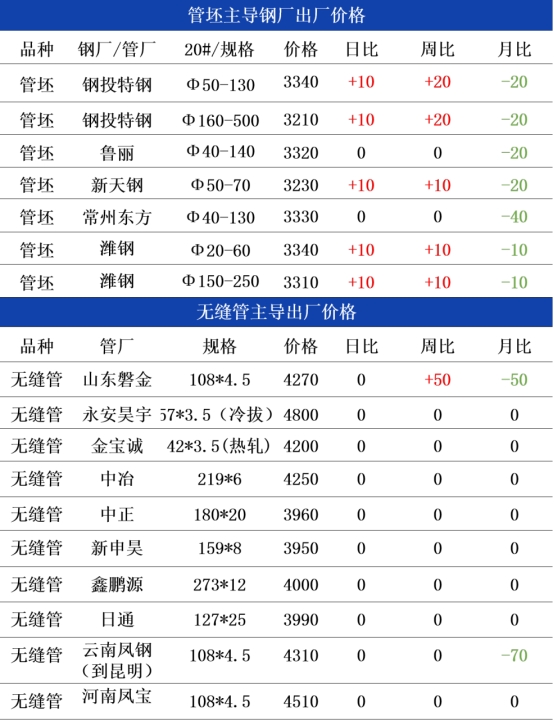 管坯:昨日期螺震荡上行昨日,管坯价格小幅上调,山东地区管坯上调10元,江苏地区管坯价格持稳运行,下游管厂采购积极性有所提高,部分终端存在投机性补库现象,成交氛围有所改善,不过,行情更多是情绪驱动而不是基本面改善,现实端面临“弱需求,强产量”问题,钢厂利润持续承压,挺价意愿强烈,并未主动减产去库,仅靠宏观政策难以走出低迷态势,即便有所反弹,空间有限;综合来看预计今日管坯价格持稳运行。