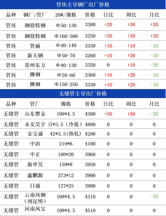 管坯:昨日管坯市场价格小幅上行,南北管坯价格上调10-20元左右。昨期货盘面强势拉涨,带动市场价格延续上行。期市走强提振市场情绪,抄底行为显现。钢厂上调出厂价格,锁单量有所增加,出货节奏同步加快;综合来看预计今日管坯价格偏强运行。